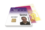 Print on card as thin as 9 mil and as thick as 40 mil. This includes the new thin plastic cards all the way up to clamshell proximity and smart cards with embedded electronics. |