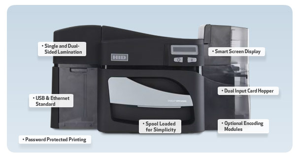 Modular Design: The DTC4500 card printer is field upgradeable, so it can change as your needs change. Add dual sided printing functionality. Add single-or dual sided holographic image lamination for durability and security. Add HID Proximity encoding (125 kHz), iCLASS Contactless encoding (13.56 MHz), or contact chip encoding. Add a same side input/output ID card hopper.